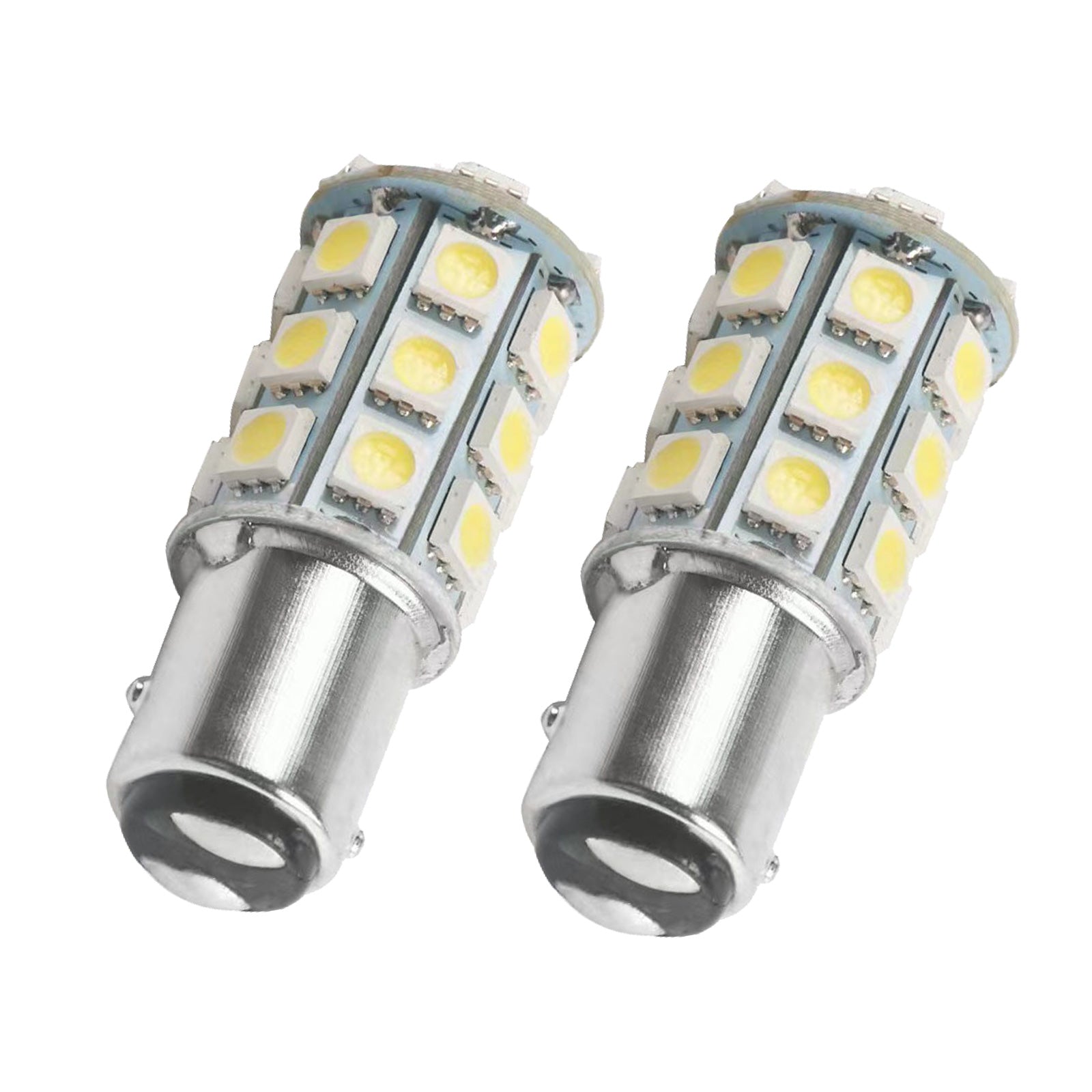 2x 12V BA15D LED White 27 SMD 5050 Indicator Signal Lights Suitable For Caravan & Car