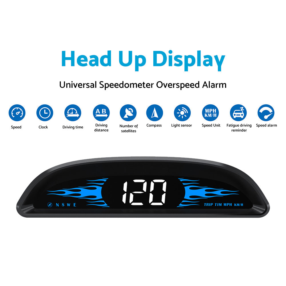 Multiple Displays, One-key Switch - This HUD is equipped with TFT high-definition LCD screen for clearer information display. It can display Speed, Compass, Ambient Light, Driving Time, Clock, Number of Satellites and Driving Distance. Just one key, and you can switch different display modes.
