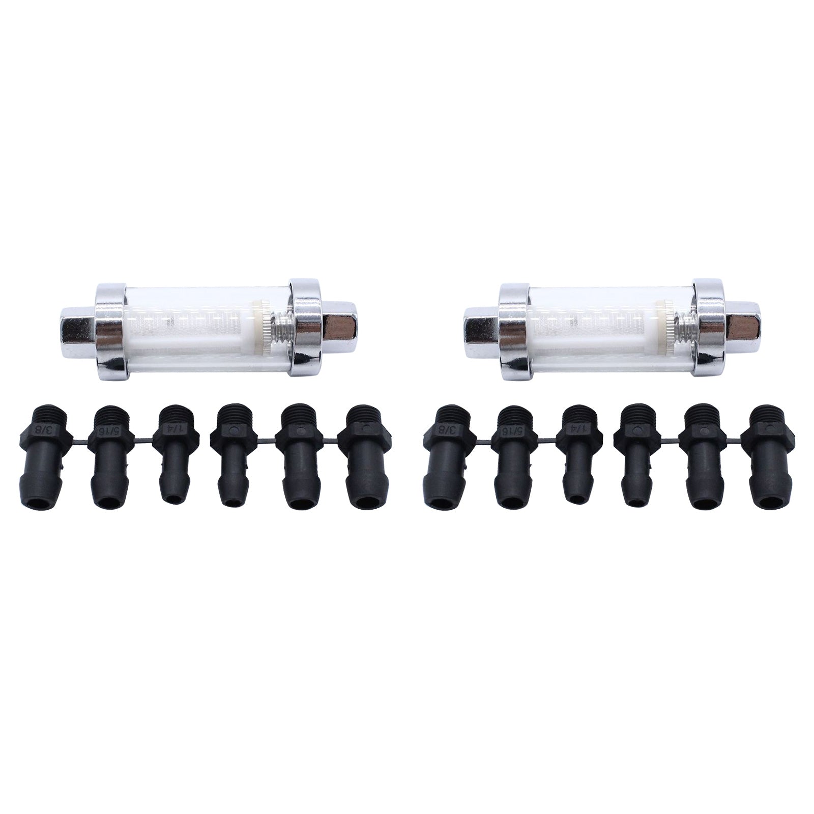 2x Reusable Washable Chrome Glass Inline Fuel Filter Suitable For 1/4 Inch, 5/16 Inch & 3/8 Inch Fuel Lines