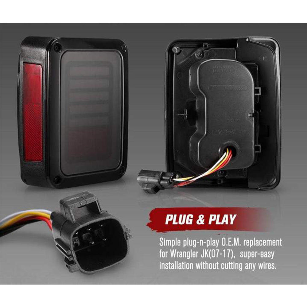 Smoked Black LED Tail Lights Rear Lamp Suitable For Jeep Wrangler JK 2007-2017